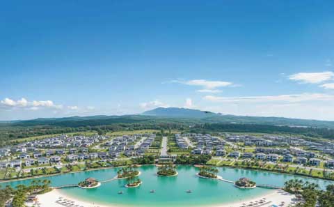 - Peaceful waterfront ambiance surrounded by lush greenery and leisure zones.